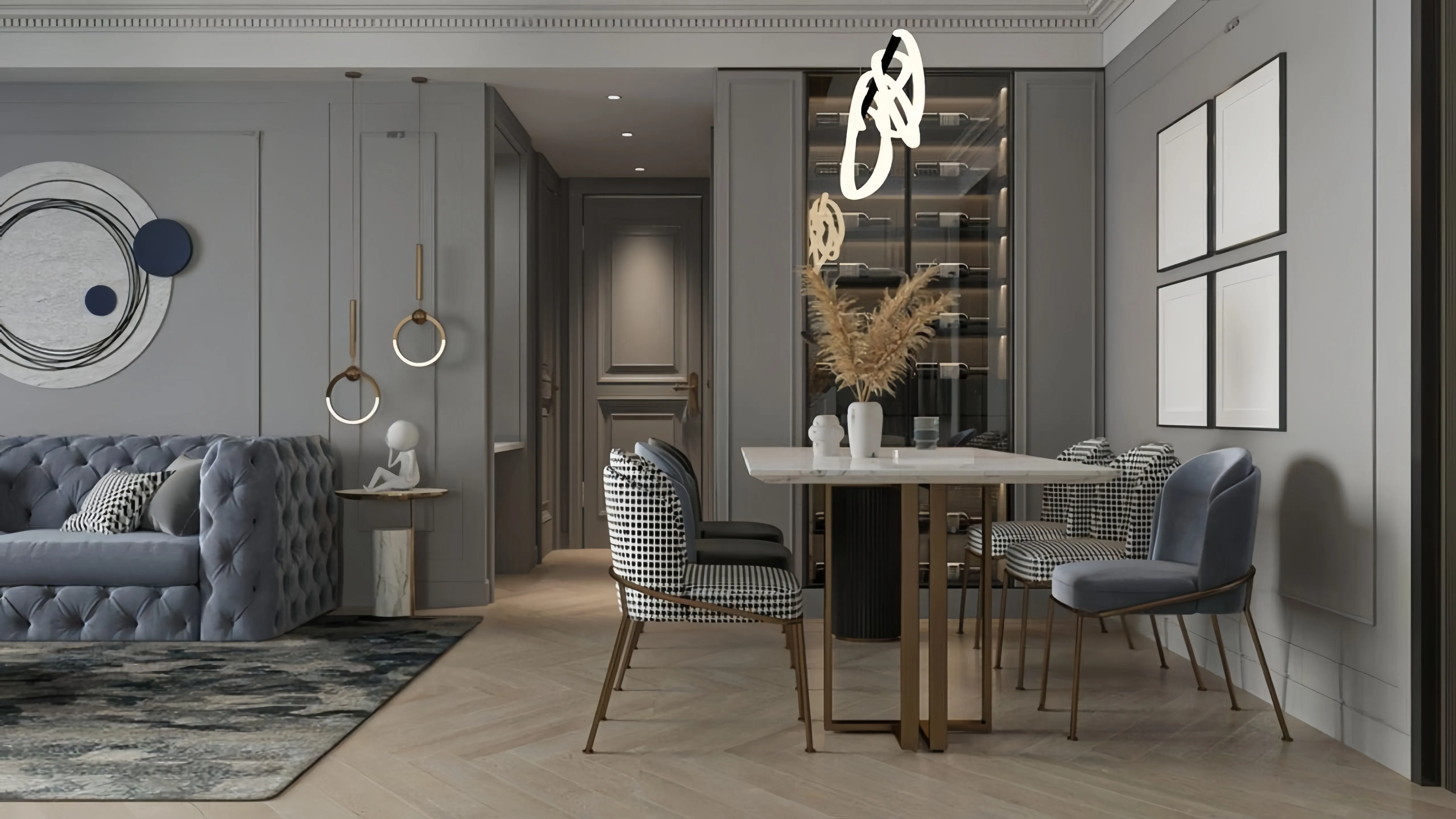 Идея для вашей лестницы: Поддержите цвет и материал балясин в других деталях. Хромированные элементы можно повторить в фурнитуре дверей, ножках мебели или рамах для зеркал. Это создаст стилистическое единство и придаст интерьеру завершенный, продуманный вид.